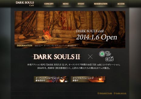 「DARK SOULS II」とコラボしたカフェ&レストラン「DARK SOULS Cafe」が2014年1月6日にオープン。開店当日にはレセプションパーティーを開催